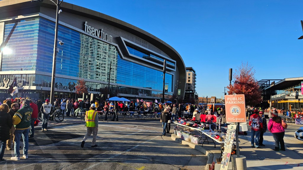 When I arrived at Fiserv in Milwaukee, it was nothing short of a sea of red hats and other pro-Trump memorabilia being worn by thousands of attendees for his speech. At one bar close by to the arena, it was clear that the servers there weren’t too thrilled about it — it’s been my personal experience, having frequented a number of bars in Milwaukee, that the servers in the city are generally progressive-minded individuals. (Still, these particularly servers poured the beers with a smile and a “have a good day” after every interaction.)